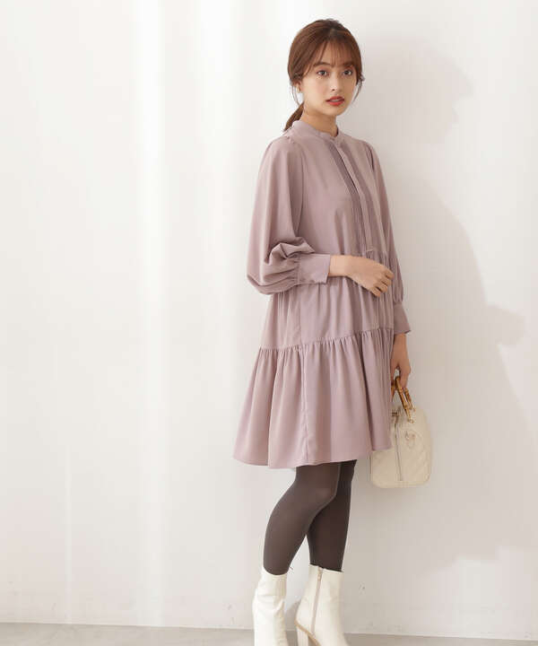 ラウンドネックギャザーティアードワンピース春秋 ワンピース ミニワンピース Vinvle ビンブル ファッション総合通販 Dholic
